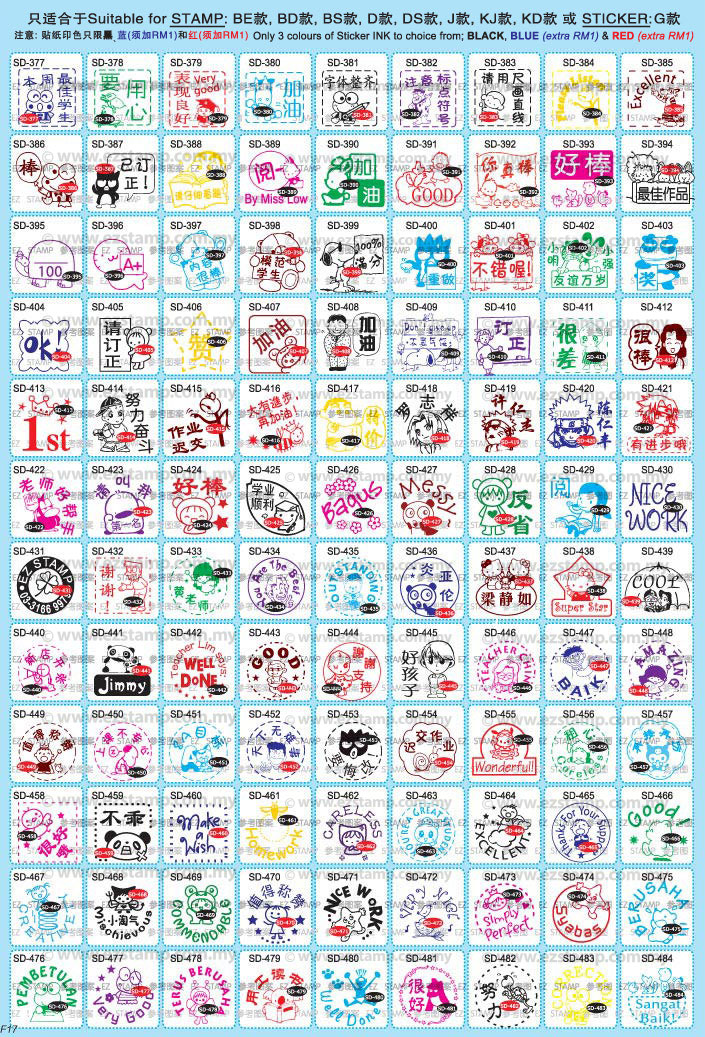 Stamp anda boleh dibuat dengan rekabentuk-rekabentuk seperti begini! Hei, you can design your stamps or stickers (Black/Blue only) to look like these! 最新样本设计!原来印章和单色贴纸(只能单一黑/蓝/红色印)也可以如此设计哦!